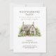 Celebrate your new home with this classic Tudor cottage watercolor housewarming invitation. The design features a stunning illustration of a charming stone cottage with a beautiful garden, perfect for a relaxed afternoon gathering. This invitation provides an elegant and formal way to announce your new home celebration to friends and family.