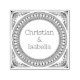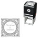 Add a touch of timeless elegance to your belongings with this custom self-inking rubber stamp, featuring a distinctive ribbed circular border and graceful stylised leaf accents around your personalised names. This efficient stamp allows for quick, consistent impressions on cards, books, or small packages, saving you time while maintaining a polished look. It's perfect for personalising wedding thank you notes, creating custom bookplates, or adding a unique mark to gifts. A durable and practical tool that combines classic design with modern convenience, ideal for any couple or individual seeking sophisticated personalisation.
