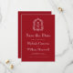 This elegant vintage-inspired wedding Save the Date design features a pair of white monogram initials in open serif font above and below a dividing line and encircled by a line art acanthus crest on a cranberry red background. The back of the card is solid cranberry.
