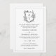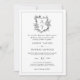 The invitation is formal and elegant, featuring a floral crest monogram, a QR code, and more detailed information on the back.
