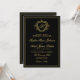 Classic crest monogram gold black wedding invitation