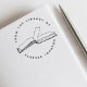 This modern classic book stamp is perfect to personalise your library books. It would also make a great gift for the book lover, teacher, or librarian! The stamp features an image of an open book in the centre. The "from the library of" text is on the top and your custom name is on the bottom, curving gracefully around an invisible circular frame. Both in a simple yet elegant typography. Click the personalise button to add your own details to make this stamp unique to you!