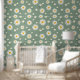 Classic Daisy Vintage-Inspired Sage Green Wallpaper