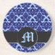 Classic Damask Blue (Monogram) Coaster