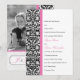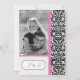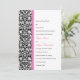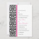 A black-and-white damask wallpaper pattern with pink accents highlight this classic wedding invitation. Easily personalised with your own information. Available in alternate colours with matching save-the-date cards, reception cards, reply cards and favours.