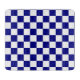 This cutting board has a classic blue and white chequerboard pattern.