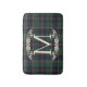 This elegant contemporary bath mat features your family monogram and a stylish plaid pattern in shades of green, dark blue, and red, evoking a classy and nostalgic English holiday feel. It is perfect for decorating your bathroom or shower. This design complements a classic colonial home, a country cottage, a log cabin, or a vacation home by a lake or river.