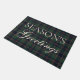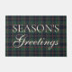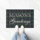 This elegant front door porch doormat features a plaid pattern and the classic message "Season's Greetings." It showcases shades of green, dark blue, and red, creating a classy and nostalgic English holiday atmosphere. This doormat is perfect for decorating a colonial-style home during the Christmas season, as well as for a country cottage, log cabin, or vacation home by a lake or river.