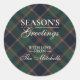 This elegant Christmas label features a plaid pattern and prominently displays the classic message "Season's Greetings." It includes shades of green, dark blue, and red, evoking a classy and nostalgic English holiday atmosphere. You can easily personalize the label with your family's name. This sticker is perfect for decorating your Christmas mail in a traditional colonial style, as well as for a charming country cottage or log cabin theme.
