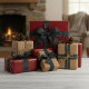 This elegant and contemporary gift wrapping ribbon showcases a plaid pattern in shades of green, dark blue, and red, creating a classy and nostalgic English holiday atmosphere. The ribbon is perfect for wrapping Christmas gifts in a classic colonial style and complements a charming country cottage or log cabin theme.