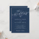 Classic Dark Navy Blue Script Wedding Invitation