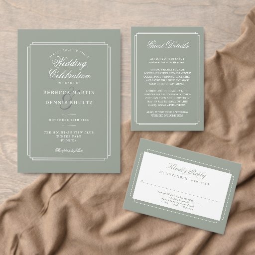 Classic Deco Sage Green Monogram Wedding All In One Invitation