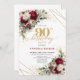 Classic Deep Red Floral Gold 90th Birthday Invite