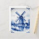 Classic Delft Blue Windmill Canal Scene Postcard