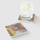 The coasters are gorgeous, a quality feel and heavy weight. They look like a precious archeological find. A rustic stone juxtaposed with a modern floral black and white print. I like the way the print goes slightly imperfect on the cut stone edges giving them a kind-of natural beauty.