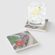 The coasters are gorgeous, a quality feel and heavy weight. They look like a precious archeological find. A rustic stone juxtaposed with a modern floral black and white print. I like the way the print goes slightly imperfect on the cut stone edges giving them a kind-of natural beauty.