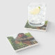 The coasters are gorgeous, a quality feel and heavy weight. They look like a precious archeological find. A rustic stone juxtaposed with a modern floral black and white print. I like the way the print goes slightly imperfect on the cut stone edges giving them a kind-of natural beauty.