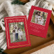 Send festive greetings with this photo holiday card featuring a red background and elegant gold foil double border frame. “Merry Christmas” is displayed in coordinating gold foil lettering above your family photo, with your family name and year printed below. The luxurious red and gold design creates a timeless and festive look, perfect for the holiday season. The back includes a square photo with space for your personalised message, completing this elegant holiday card.