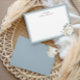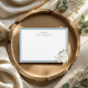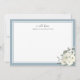 This modern elegant personalized note card features beautiful watercolor ivory flowers with butter dusty blue border.