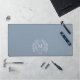 Classic Dusty Blue Floral Crest Monogram Desk Mat
