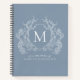 Classic Dusty Blue Floral Crest Monogram Recipe Notebook