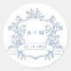 Classic Dusty Blue Floral Crest Monograms Round Sticker