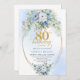Classic Dusty Blue Floral Gold Frame 80th Birthday Invitation