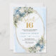 Classic Dusty Blue Floral Sweet 16th Birthday Invitation
