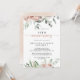 This classic dusty pink rose 50th wedding anniversary invitation is perfect for a rustic event. The design features elegant watercolor dusty pink roses and green foliage, neatly assembled into beautiful bouquets.
