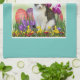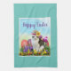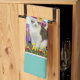 Not everyone loves rabbits so this holiday kitchen towel was created for the cat lover. The towel features a cutout of a white and grey tabby cat wearing a hat. It also features a classic Easter flower garden with tulips, daffodils, grasses, and colourful eggs. Use this towel to decorate your kitchen for the Easter holiday.