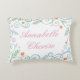 A beautiful, decorative throw pillow, perfect for your little girl! Features swirls, leaves and flowers in mint green, light pink, orange, and light slate blue, framing the pillow. The text is easy to customise, and the colour can be changed if desired. The back of the pillow is a solid light pink, but the colour can be customised if you'd like. Shabby chic, colourful, elegant - perfect!