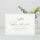This elegant save the date card features classic script and simple watercolor greenery design surrounded by a thin frame, great for classic wedding, vintage wedding, spring wedding or summer wedding.