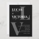 Classic Elegant Black and White Monogram Wedding Invitation. Bold initials on the black background. The design tool allows you to modify text elements to your preference. To change the text select «Details». You have the flexibility to adjust the colours of your choice. Customise your design with ease using this feature.