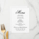 Formal black and white wedding menu card design features beautiful typography that combines a traditional flourished calligraphy script with classic block lettering on a clean white background. Includes a decorative scroll design accent. The custom text can be personalised with a monogram of the bride and groom names and wedding date as well as the dinner menu details for the wedding day. Please shop our Classic Elegant Black and White Wedding Collection for coordinating designs.