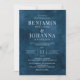Classic and elegant wedding invitation with a floral blue watercolor background and white letters. Text-only design with traditional wording. Digital printable or physical printed paper options. Personalise it with the names of the Mr. and Mrs., venue location, registry, RSVP information, and any details you need to include. Matching suite products available.