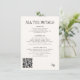 Elegant simple formal black and soft cream ivory retro vintage style typography monogrammed wedding guest information details enclosure card template with QR code to website. Suitable for classic old money heritage themed spring summer fall, or winter weddings.