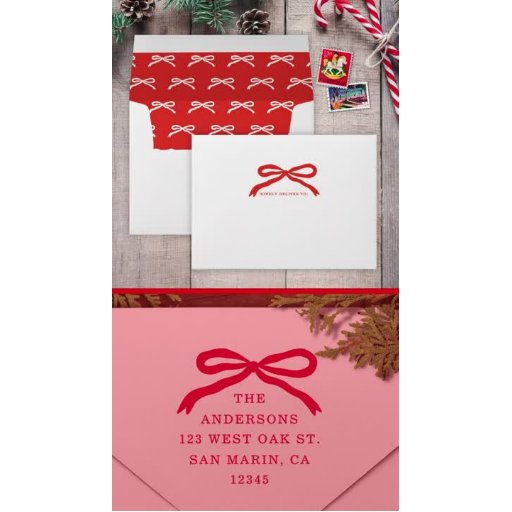 This classic yet modern holiday photo card features a hand-drawn bow frame, simple typography, and one horizontal photo on the front. On the back is a festive red and white bow pattern. DESIGN TIP: You can further customise this design by adding another photo and/or additional text to the back of the card. * All background, text, and greeting colours are customisable.