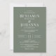 Classic and elegant wedding invitation with a moss green background and white letters. Text-only design with traditional wording. Digital printable or physical printed paper options. Personalise it with the names of the Mr. and Mrs., venue location, registry, RSVP information, and any details you need to include. Matching suite products available.