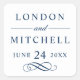 Formal navy blue wedding favour sticker design features beautiful typography with classic block lettering. The custom monogram text can be personalised with the bride and groom names and wedding date. Includes a decorative scroll accent. Please shop our Classic Elegant navy blue and White Wedding Collection for coordinating designs.