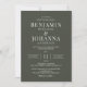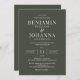 Classic and elegant wedding invitation with a olive green background and white letters. Text-only design with traditional wording. Digital printable or physical printed paper options. Personalise it with the names of the Mr. and Mrs., venue location, registry, RSVP information, and any details you need to include. Matching suite products available.