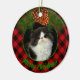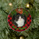 Classic elegant red black plaid pinecone pet cat ceramic ornament