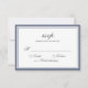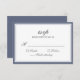 Classic wedding RSVP response card. Elegant traditional script in dark grey within a blue double border. Blue back. To adjust the layout, click Personalised It, Edit Text, then click and drag text sections to desired locations. Use Cntrl to select and move multiple sections at once.