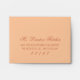 Custom A2 peach and terracotta orange wedding RSVP response card envelopes feature an elegant white return address that can be personalised. Please shop our Classic Elegant Terracotta Orange Wedding Collection for coordinating designs.