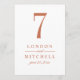 Elegant and stylish terracotta orange wedding table number card features a beautiful minimalist typography monogram design. The custom text and table number can be fully personalised with the bride and groom's names and wedding date. Note, each table number card must be customised and individually added to the shopping cart (1,2,3...etc.). Please shop our Classic Elegant Terracotta Orange Wedding Collection for coordinating designs.
