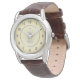 Classic Elegant Warm Gold Face Brown Leather Strap Watch