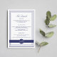 Elegant navy blue and white monogrammed wedding guest information accommodation reception details insert card in a classic formal style.