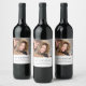 Chic and elegant wine labels are a perfect way to personalise your wine wedding favours. Design features your favourite photo with your last name, wedding date and wine varietal beneath in classic charcoal grey block lettering on a white background.