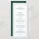 Classic style forest green / emerald green wedding menu featuring a simple and minimal design with your monogram, names and wedding date at the top along with your menu surrounded by a double border. The fonts alternate between and elegant script, a traditional serif and minimalist sans serif fonts. This menu is great for a formal wedding.