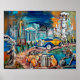 I fell in love the first time I saw a painting with one of Peter Stilton's blue Rolls Royces. He paints them very often and is currently writing a children's book describing the travel of Montague and Elinore, two of his favorite Rolls Royces. Those two go on a magical journey involving castles, chess pieces that leads the from Texas to New York, and proceeds to Scotland, and then to Paris and Venice. I can't wait until he is done writing. The colors are wonderful. The paper quality is good, although, I bought two other posters, one in Premium Canvas quality and the other in Archival. This truly boils down to "you get what you pay for". There is a huge difference in the paper quality and in the future, I will buy either Premium Canvas or Archival Heavyweight.