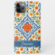 This beautifully arranged classic Mediterranean Talavera-style botanical flower design features a vibrant pattern of yellow, orange, red, green, and bright blue flowers and leaves on a crisp white background. There is also plenty of space to customise or personalise it with your name, monogram, or initials. This case is available for a wide range of Apple iPhone models, including the iPhone 6, 7, 8 Plus, X (10), XR, XS, 11, 12, 13 Mini, 14, 15 Plus, and 16 Pro Max. This design is a must-have for anyone looking to express their unique style. Elevate your mobile device accessory and make a trendy fashion statement with this one-of-a-kind masterpiece.